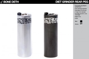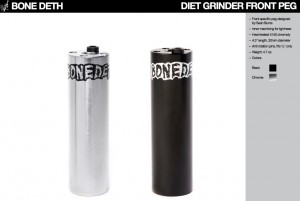 Diet Grinder első kilépő: Sean Burns tervezése, melyet előre javaslunk. Anyaga 4140-es hőkezelt CrMo, belső kimarásokkal az alacsonyabb súly érdekében. 4.3 coll hosszú, 32mm átmérőjű kilépő, elfordulásgátló csavarokkal, 10mm-es tengelyhez. Fekete és krómozott színben kapható. Súlya 130g/peg, ára 3.500Ft/db.