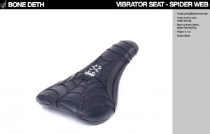 Vibrator ülés, pókháló-mintás:vékonyabban párnázott, nagyon kényelmes és jó formájú pivotal ülés pókhálót idéző műbőr borítással. Stílusos és eredeti, 250g-os súllyal, 8.500Ft-os áron.